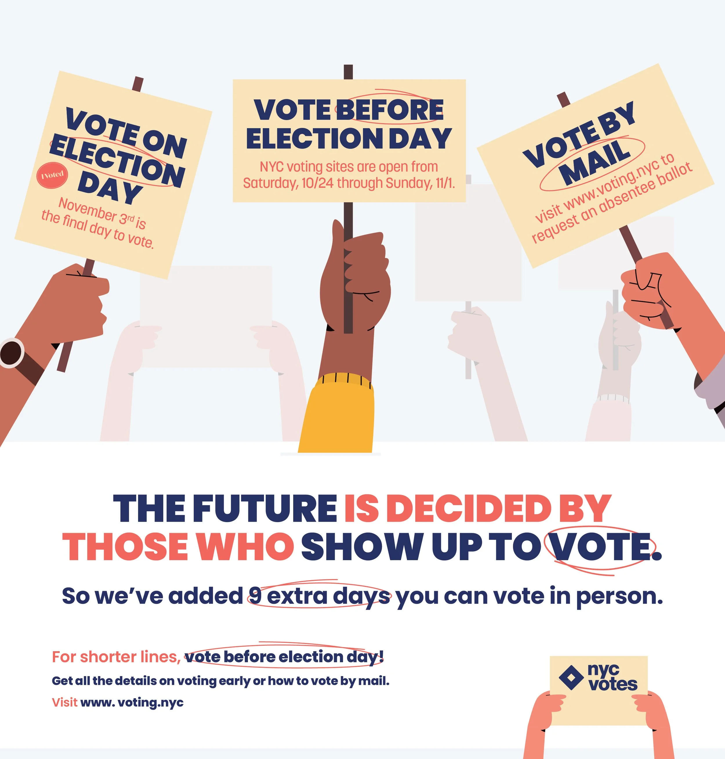 Snippets A collection of work that I’ve designed for production, concepts and fun. Kumon Student Q4 2021 social postsSelected concepts NYC Votes Early Voting posterPresented concepts NYC Votes Early Voting posterPresented concepts NYC Department of Health Vaccine-Ready Kids posterPresented concepts